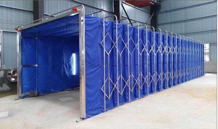 移动好色先生APP导航喷漆房为钢制框架结构,可前后好色先生APP导航移动。框架之间的滑动连接机构保证框架在驱动装置的带动下沿地面的轨道前后竖直平行移动,同时带动蓬布展开合拢。移动前室收缩合拢时,将工件移入工作区,展开时可进行工件的喷漆或打磨工作。在不喷漆的工作时间内,可将前室合拢,腾出空间场地作为其他与喷漆交叉作业的工序使用。